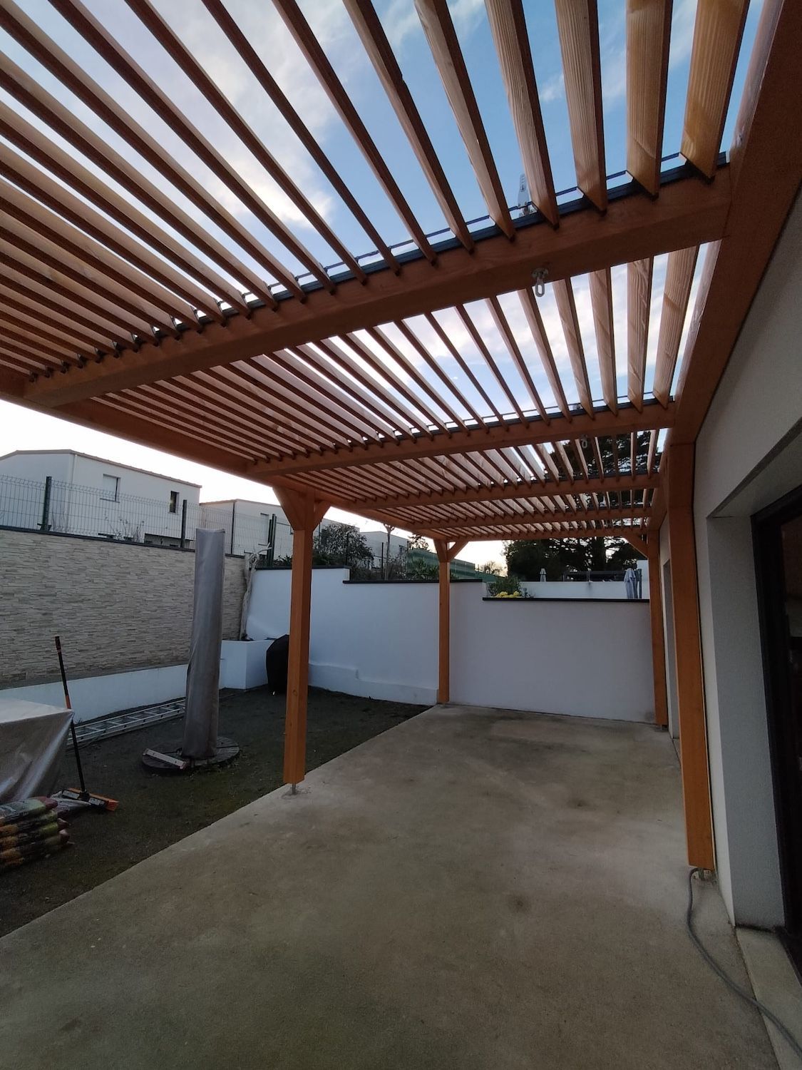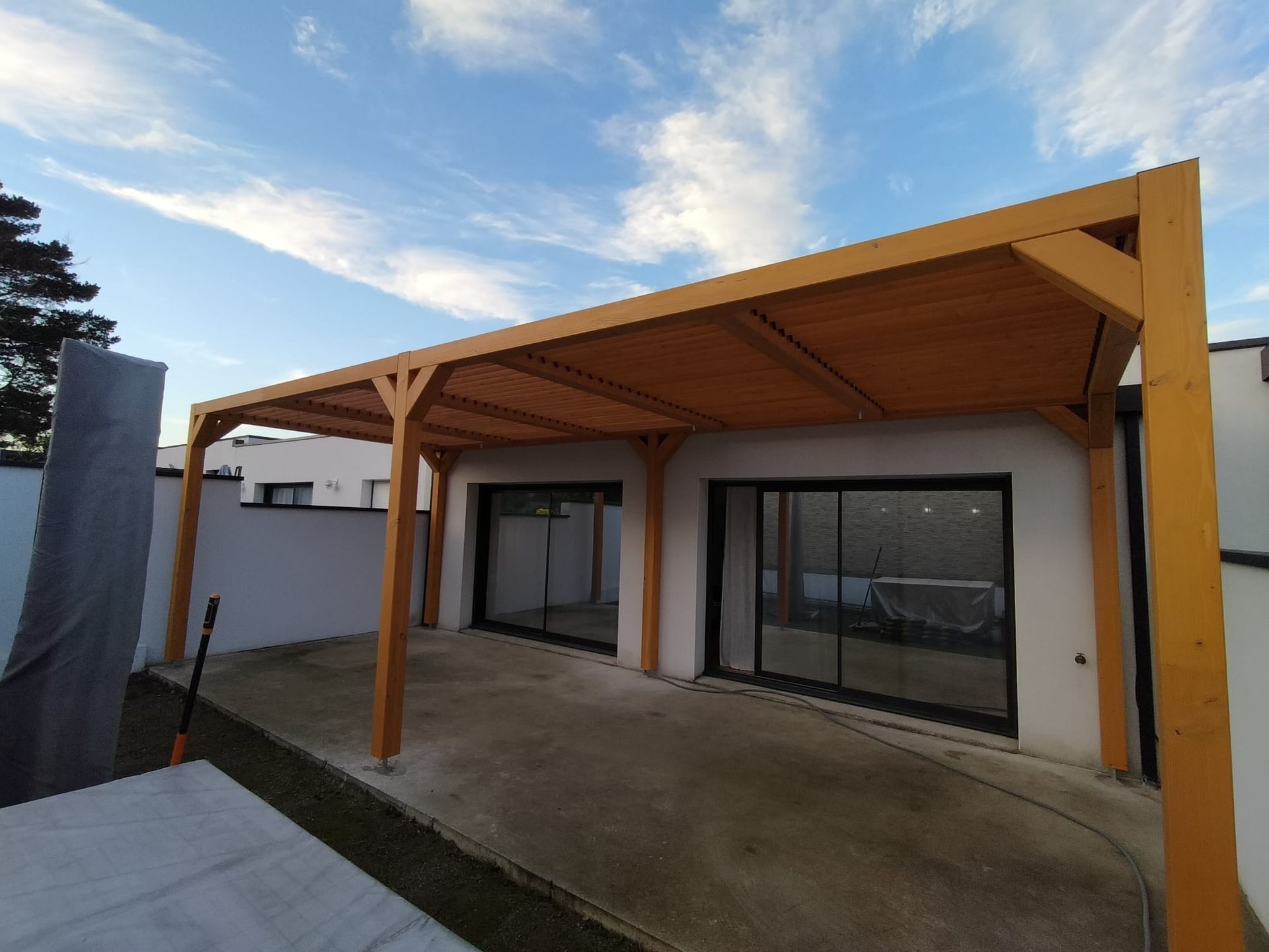 Terrasse alignée avec la sortie de la maison pour un confort optimal.