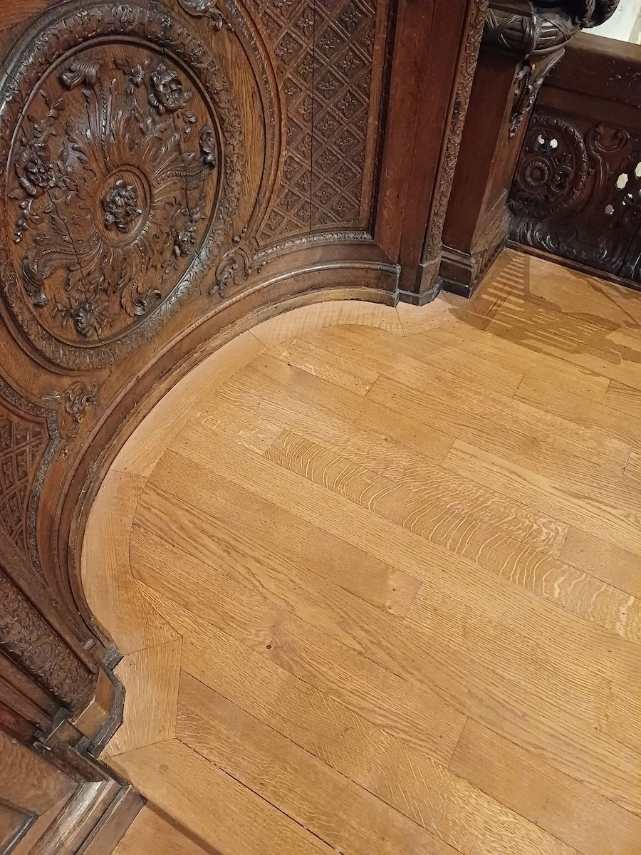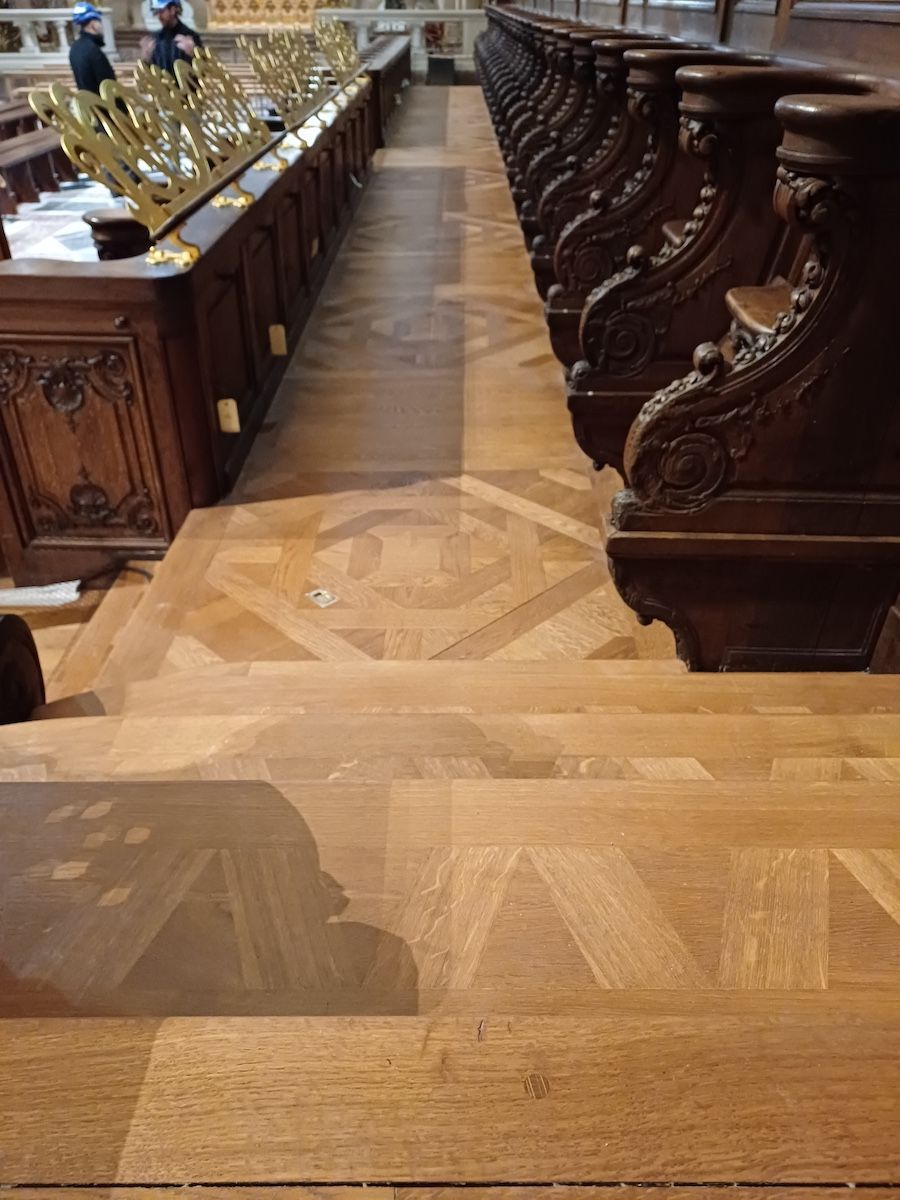 Deux niveaux de parquet et 5 marches cintrées pour les stalles de Notre Dame de Paris