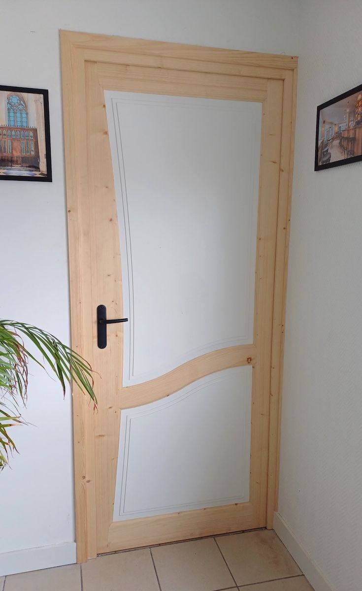 Porte intérieure double parements en épicéa huilé et panneau mdf peint