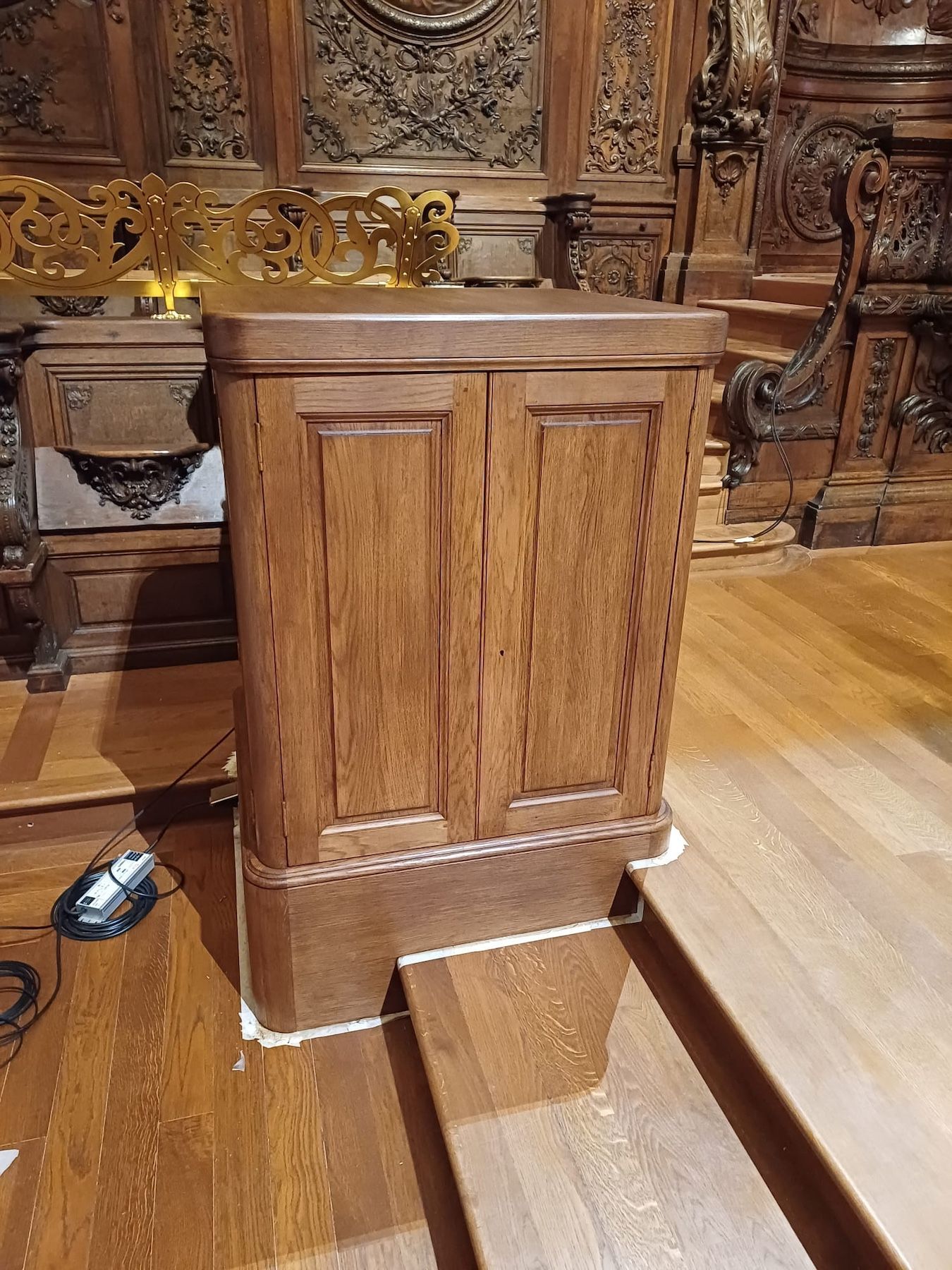 Crédence sans finition avant de partir en livraison pour Notre Dame de Paris