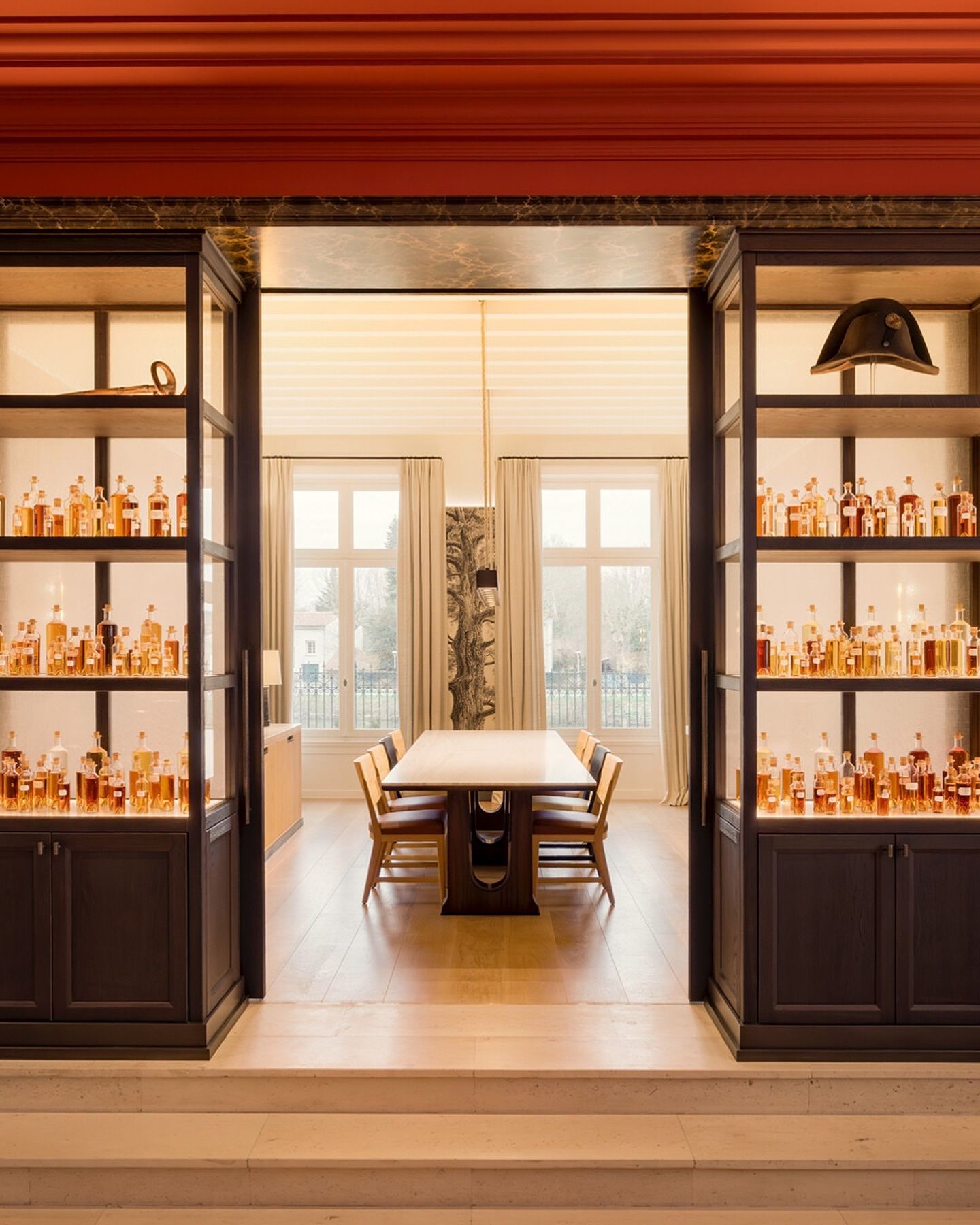 Présentoir à bouteilles de Cognac pour la tasting room d'un château en Charente