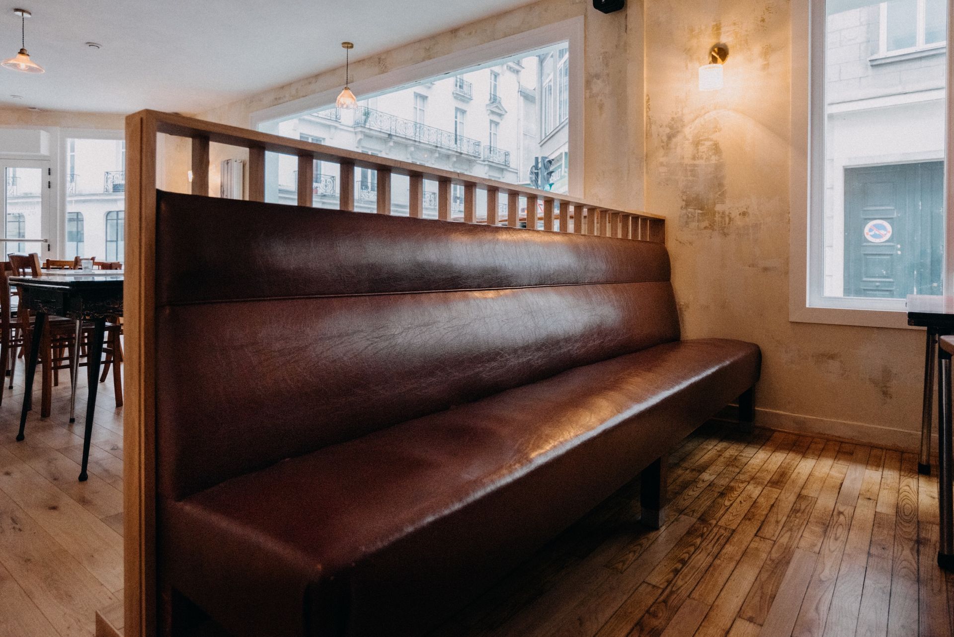 Modernisation d'une vieille banquette pour lui donner un nouveau souffle tout en conservant son charme d'origine.