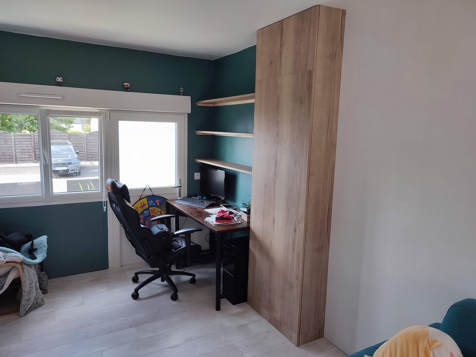 Intégration d'un bureau existant avec ajout de trois étagères et d'un caisson pour le compteur électrique.